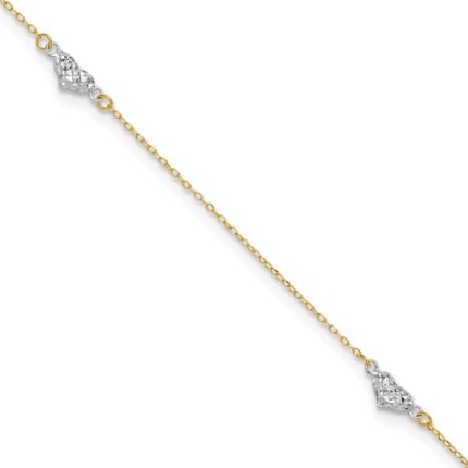 14k Two-tone Diamond-cut Triple Puffed Hearts Plus Extender – Total Anklet
