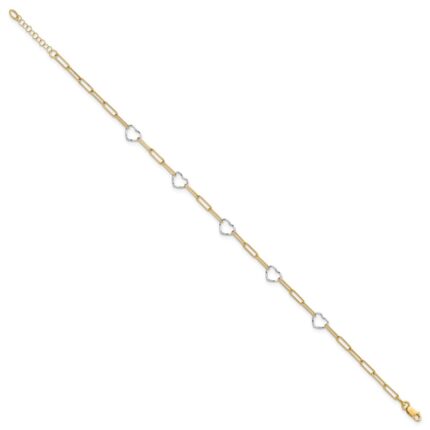 14K Two-tone 5 Hearts and Paperclip Links Plus Extender – Total Anklet