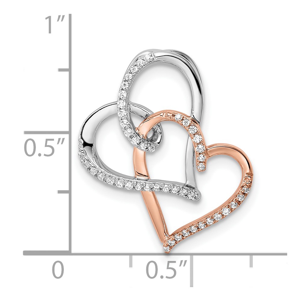 14k Two-tone White and Rose Entwined Double Heart Diamond Chain Slide