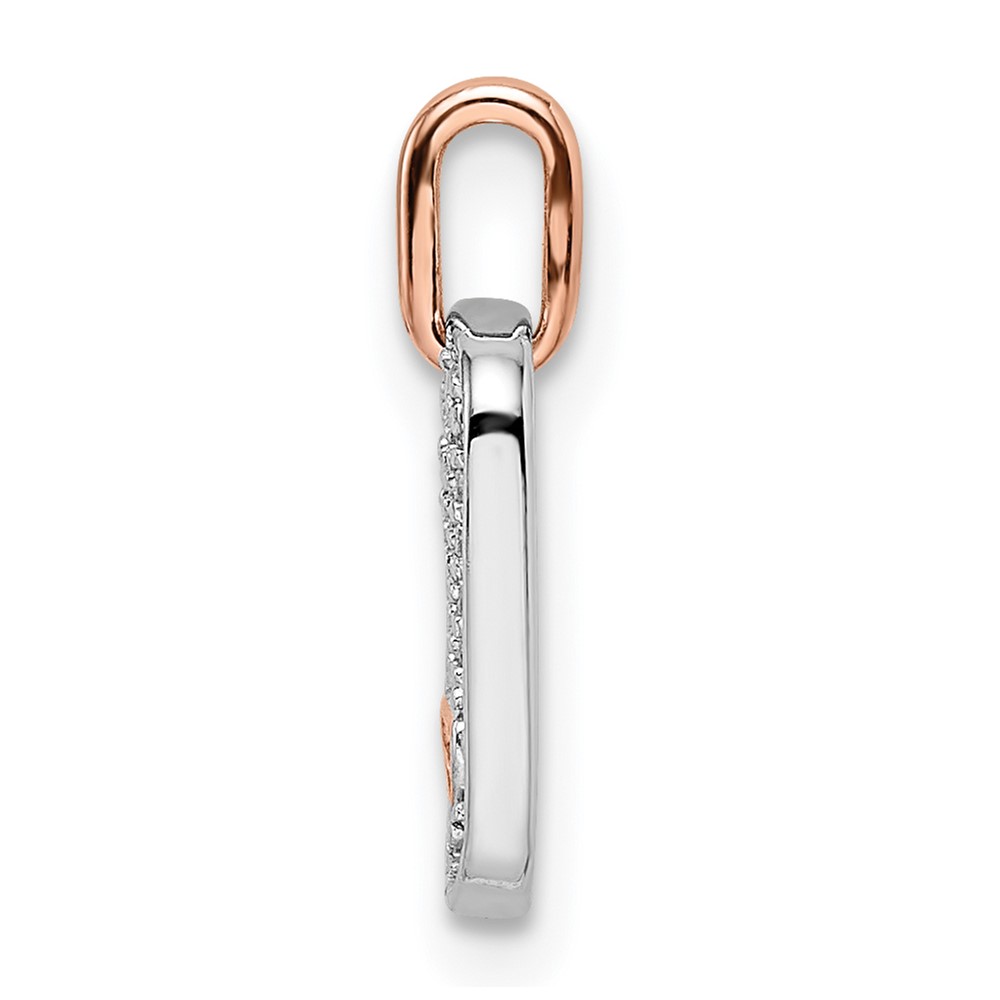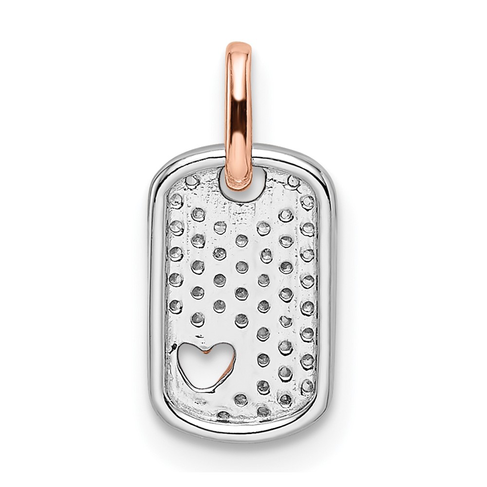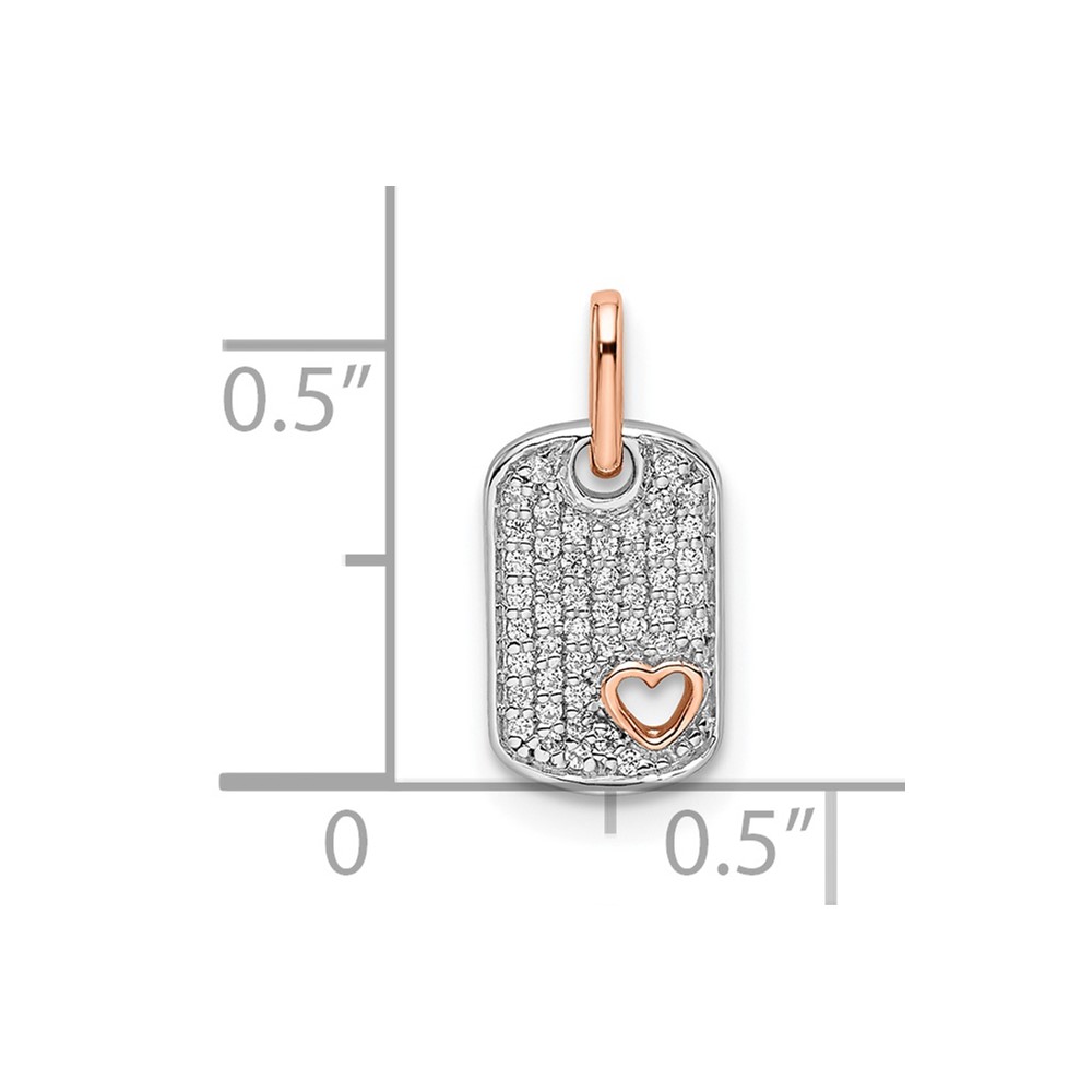 14k Two-tone White and Rose Small Dog Tag with Heart Diamond Pendant