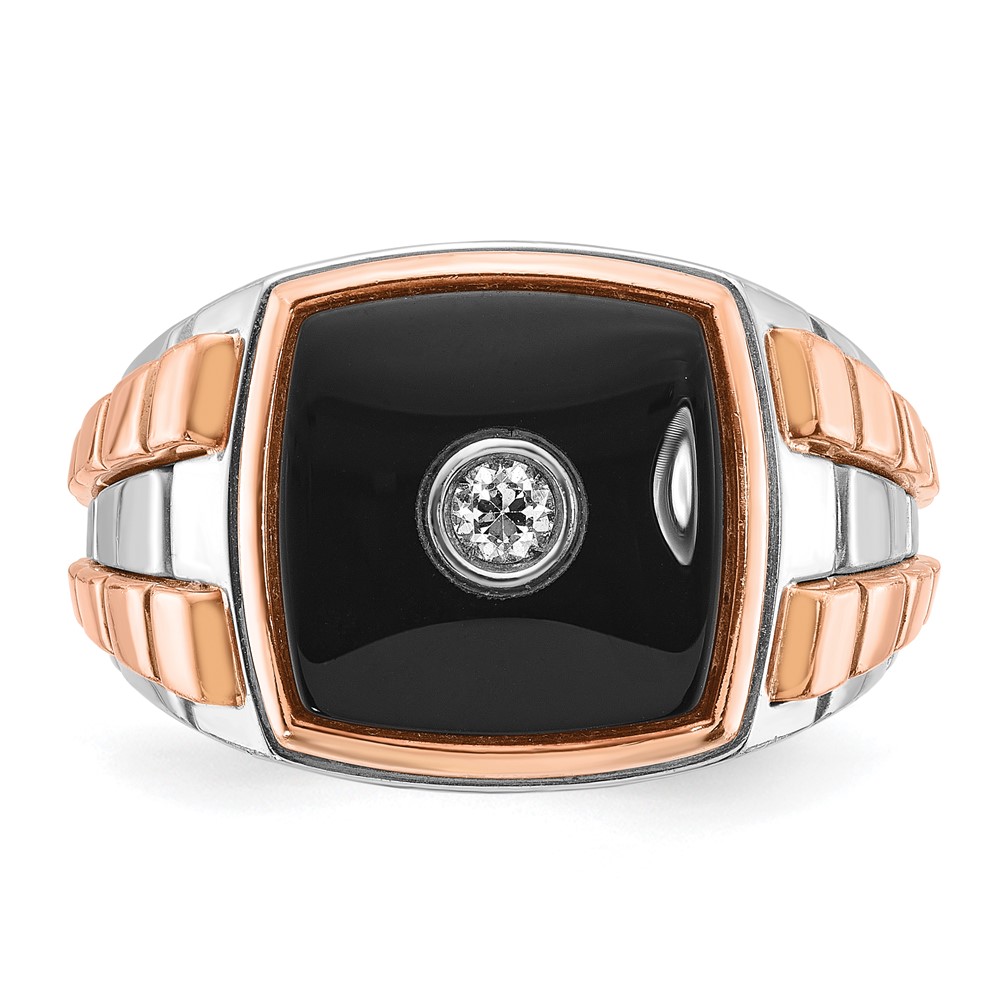14k Two-tone White/Rose IBGoodman Men’s Onyx and 1/10 carat Diamond Complete Ring