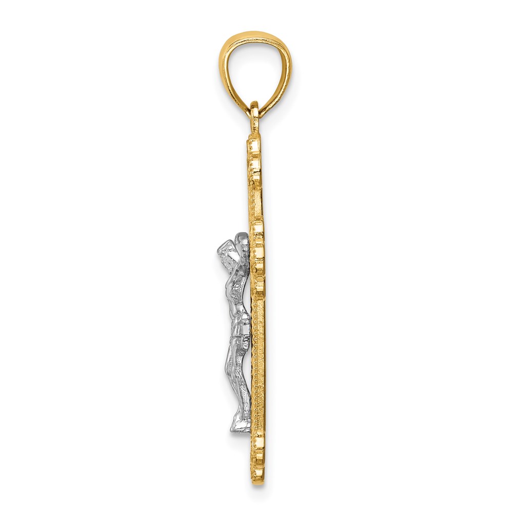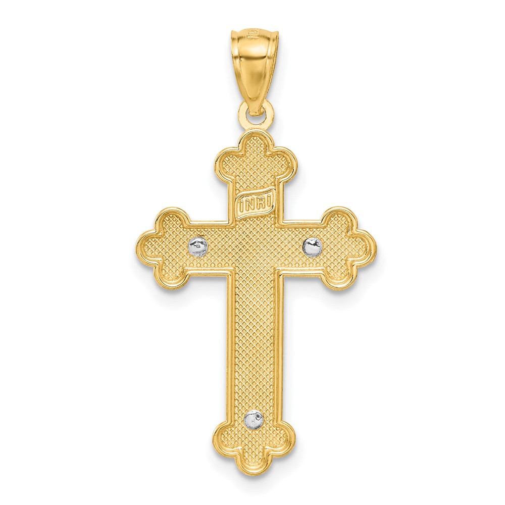 14K Two-Tone with White Rhodium Inri Budded Crucifix