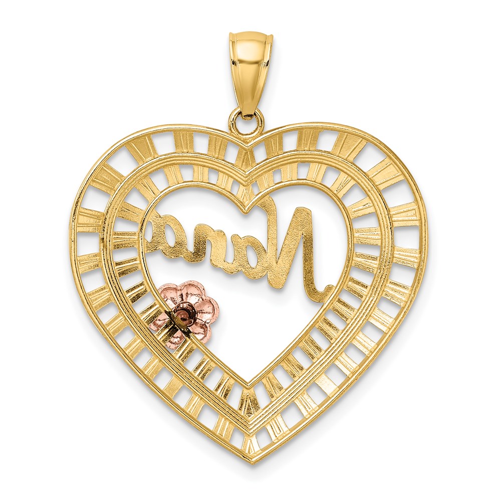 14k Two-tone with White Rhodium NANA Heart with Flowers Charm