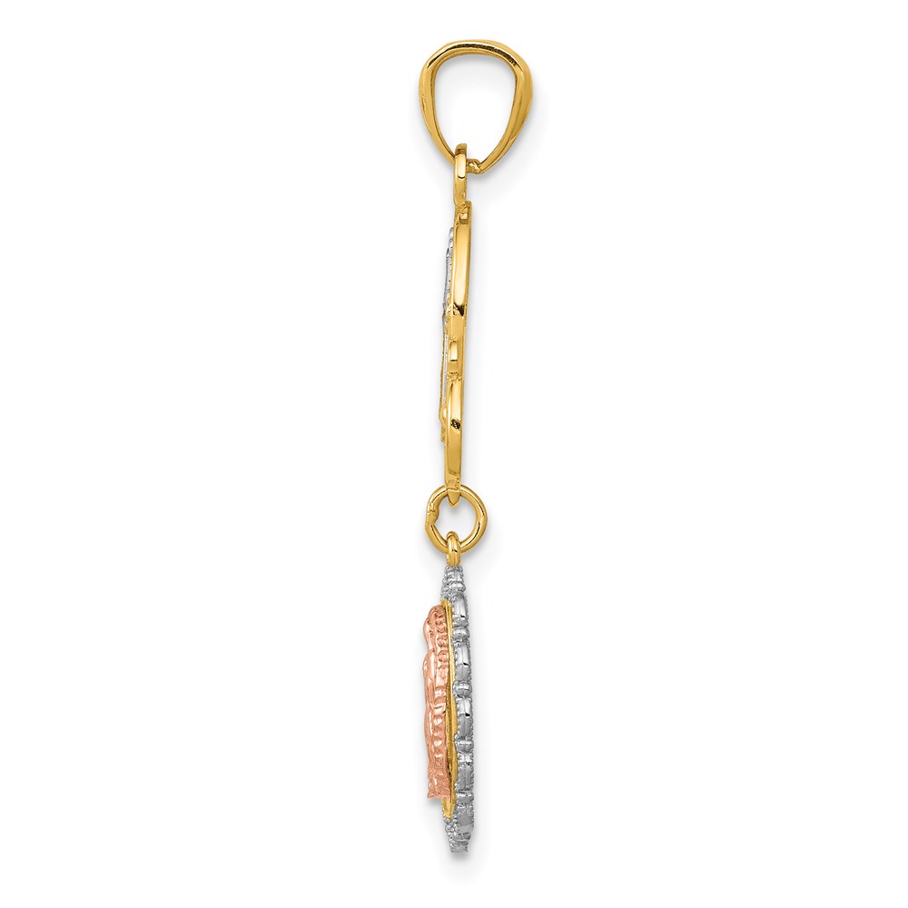 14K Two-Tone with White Rhodium Our Lady of Guadalupe and Cross Pendant