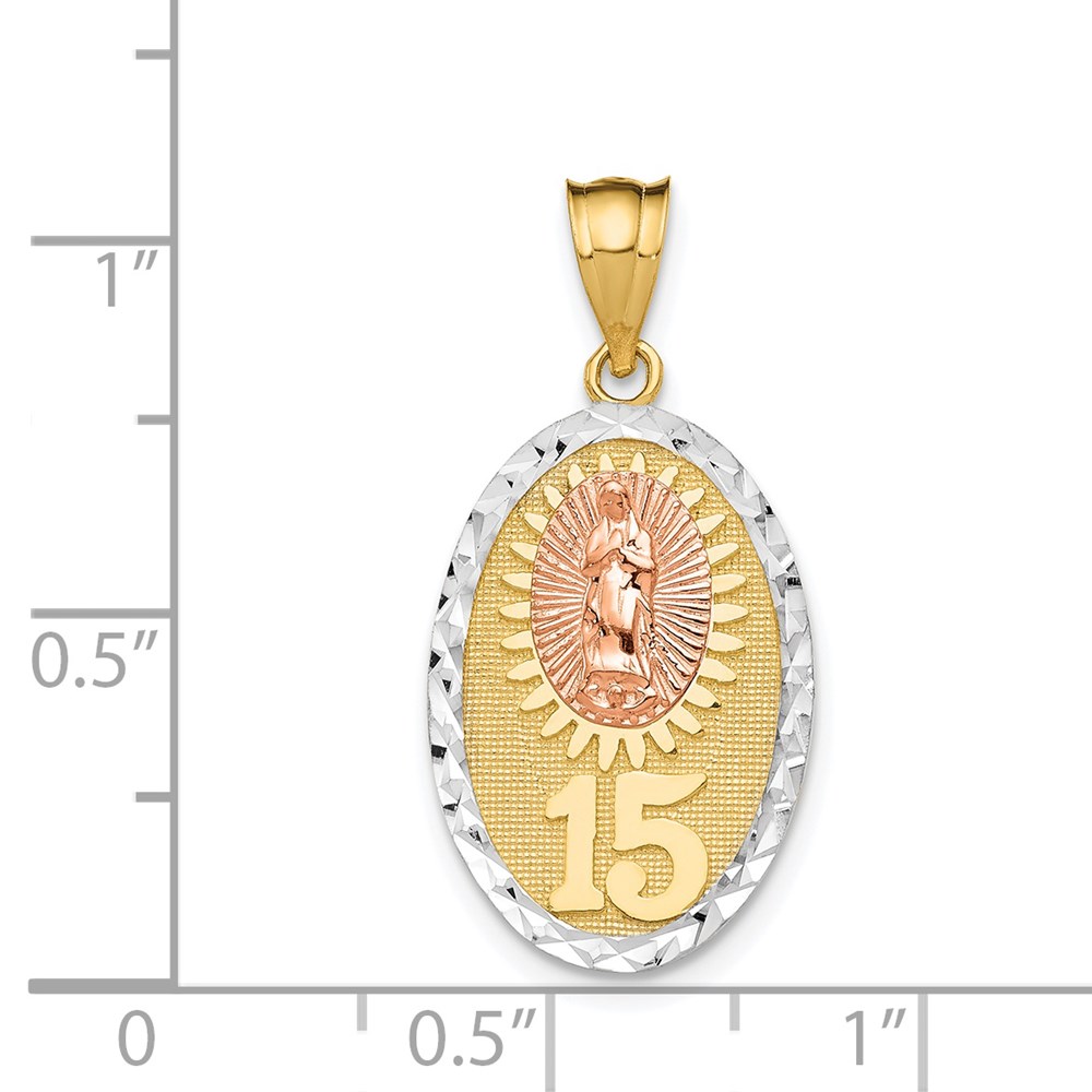14K Two-tone with White Rhodium Solid Our Lady of Guadalupe 15 Oval Pendant