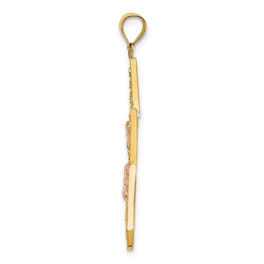 14k Two-tone with White Rhodium Star with Flowers Pendant