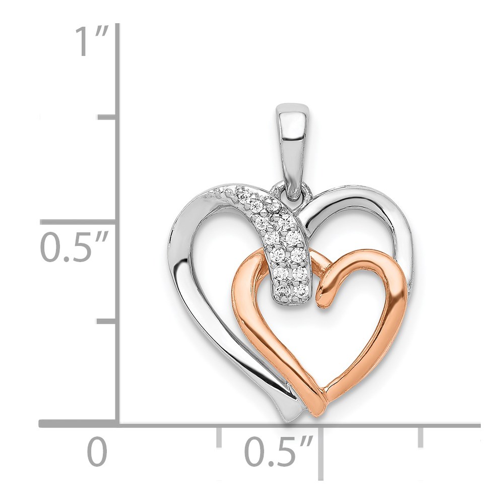 14k White and Rose Gold 1/20 carat Diamond Double Heart Pendant