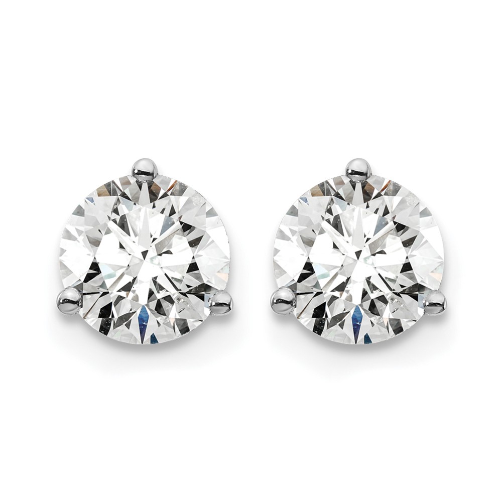 14k White Gold 1 1/2 carat Certified Lab Grown Diamond VS/SI+ G+ Round Complete Three Prong Screwback Stud Earrings