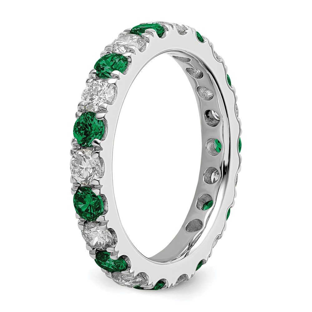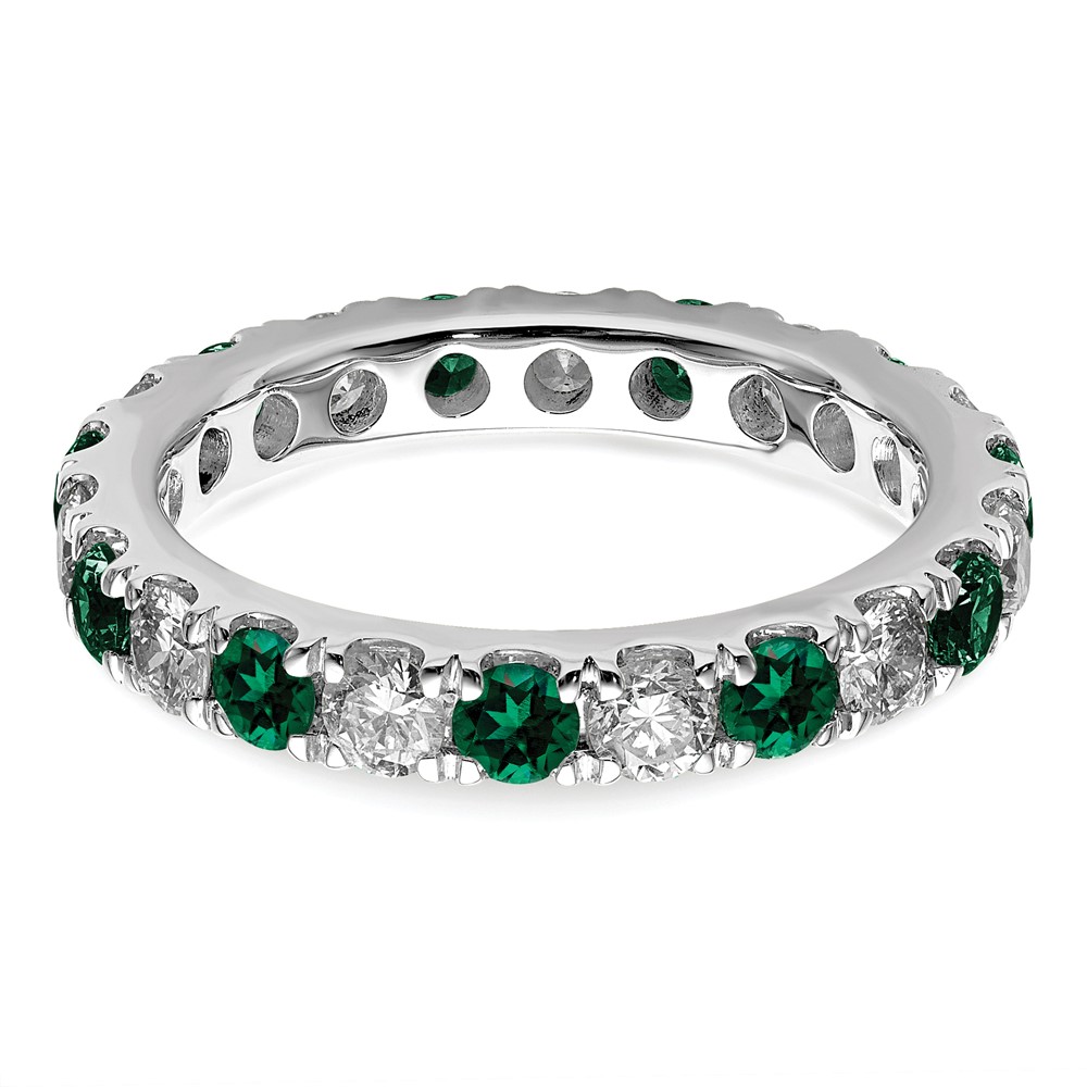 14k White Gold 1 1/5 carat Lab Grown Diamond VS/SI+ G+ and Lab Created Emerald Size 8.5 Eternity Band