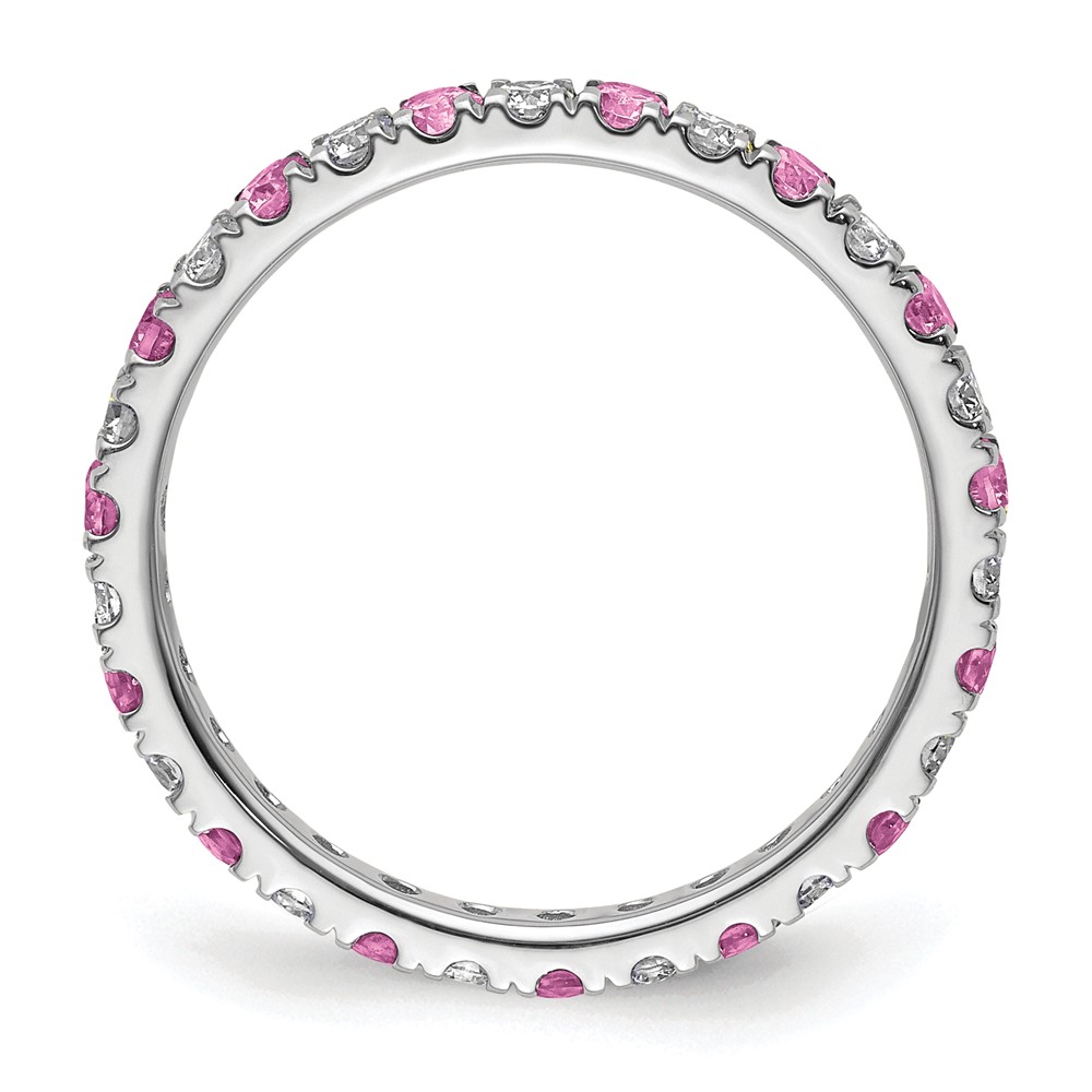 14k White Gold 1/2 carat Lab Grown Diamond VS/SI+ G+ and Lab Created Pink Sapphire Comp Eternity Bandd