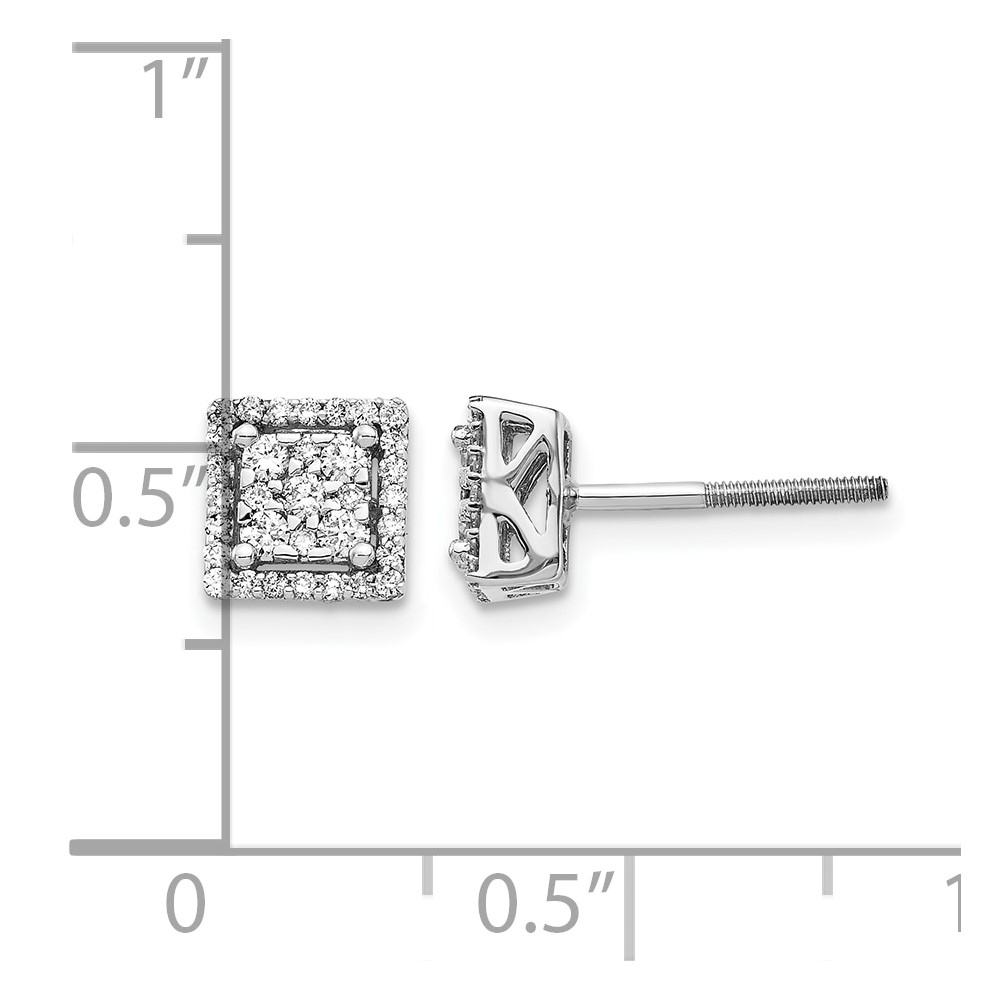 14k White Gold 1/3 carat Diamond Cluster Square Screwback Post Earrings