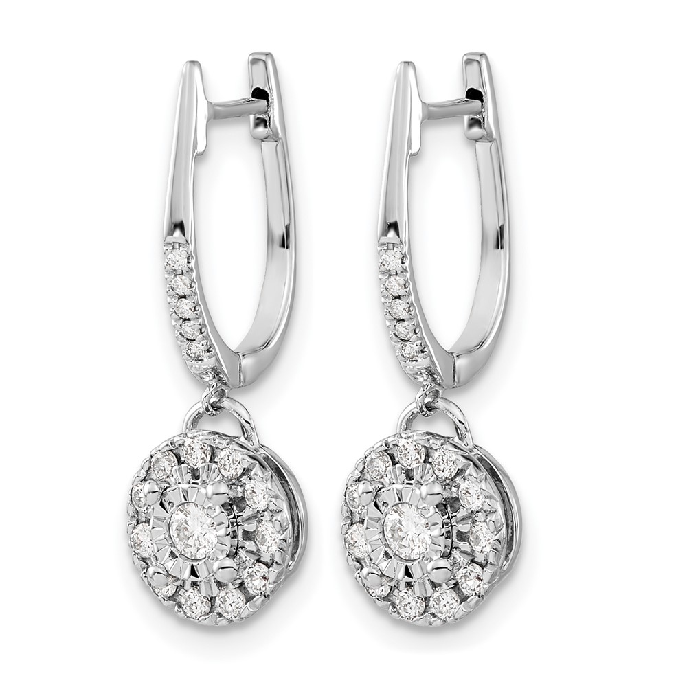 14k White Gold 1/3 carat Diamond Round Cluster Dangle Hinged Hoop Earrings