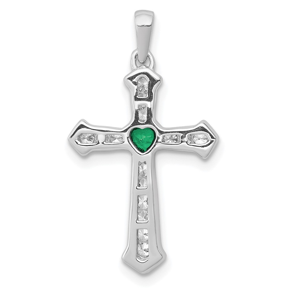 14k White Gold 1/5 carat Lab Grown Diamond VS/SI+ G+ and Lab Created Emerald Complete Cross Pendant