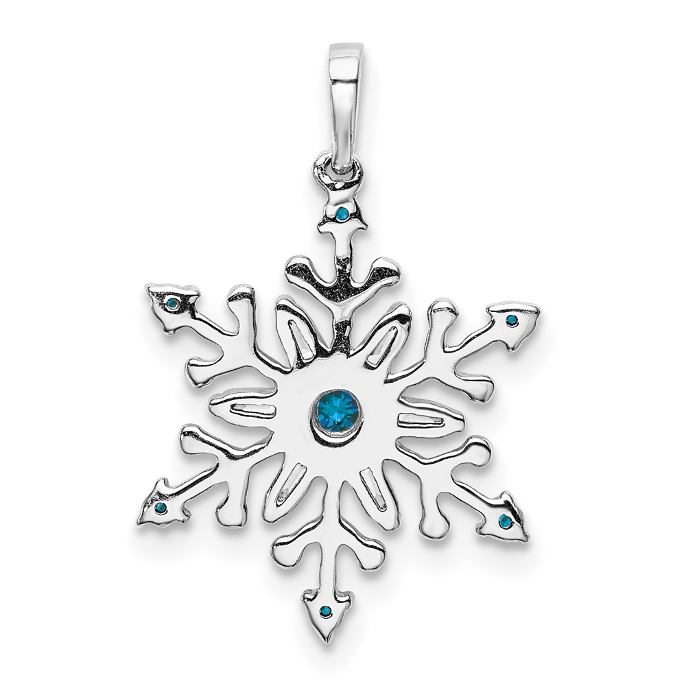 14k White Gold 1/6 carat Blue and White Diamond Snowflake Pendant
