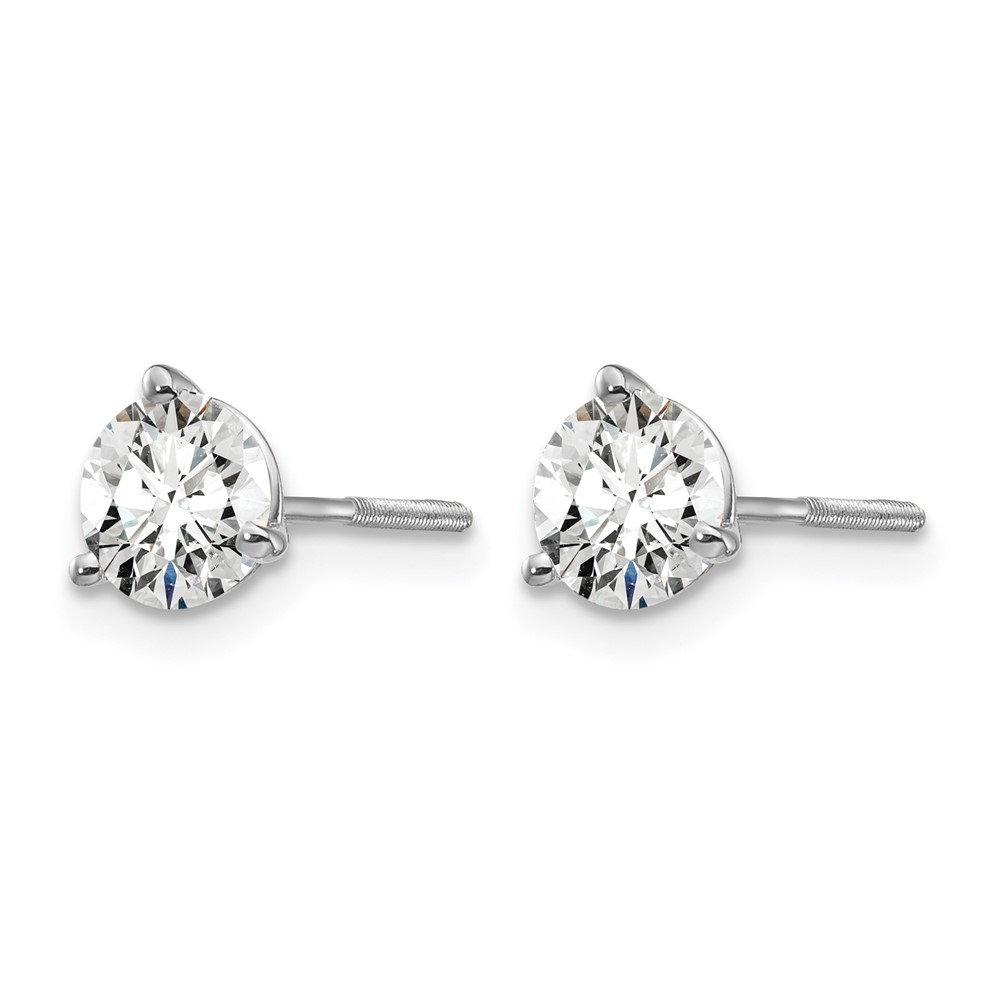14k White Gold 1 carat Certified Lab Grown Diamond VS+ F+ Round Complete Three Prong Screwback Stud Earrings