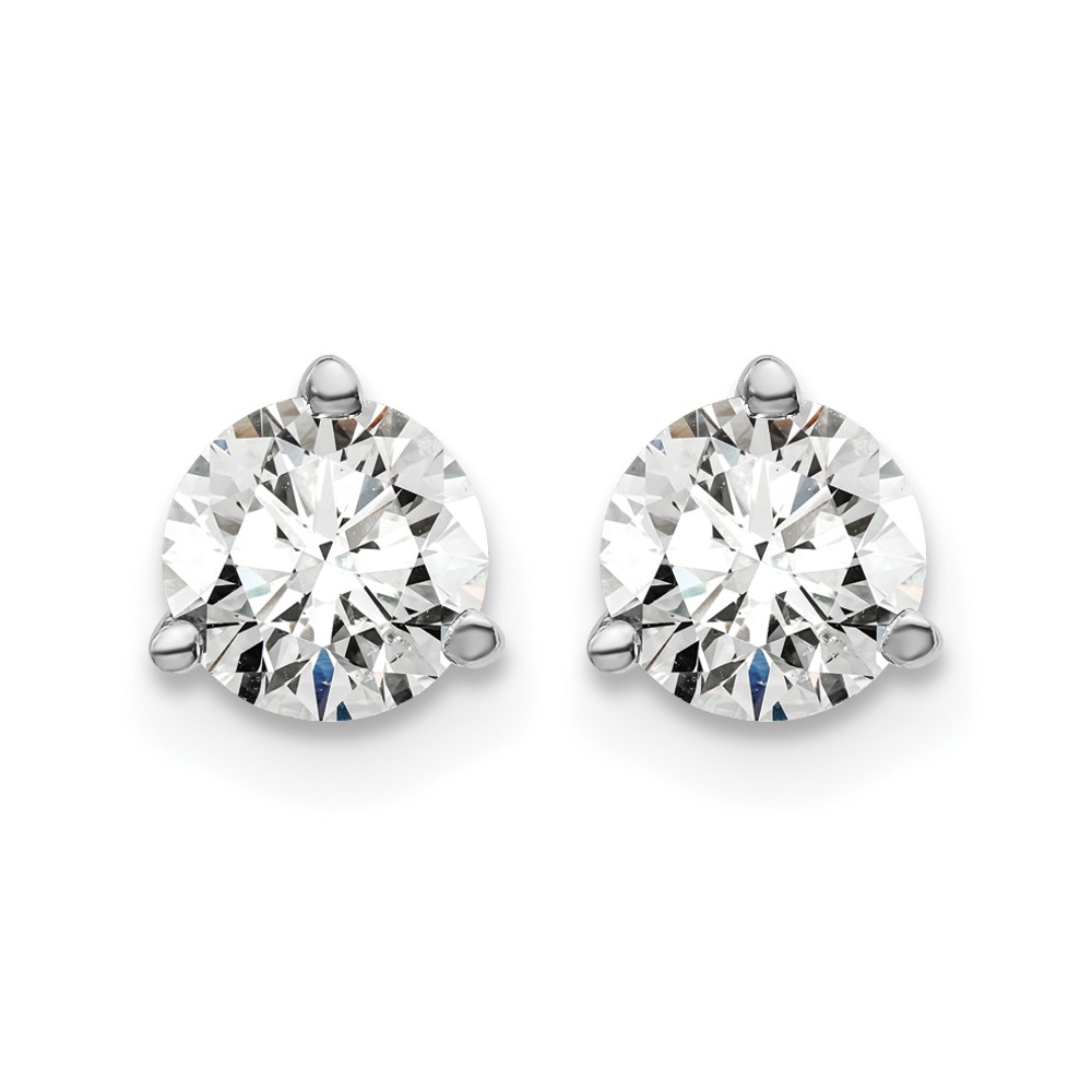 14k White Gold 1 carat Certified Lab Grown Diamond VS/SI+ G+ Round Complete Three Prong Screwback Stud Earrings