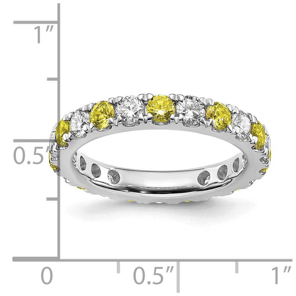 14k White Gold 1 carat Lab Grown Diamond VS/SI+ G+ and Lab Created Yellow Sapphire Size 6.5 Eternity Band