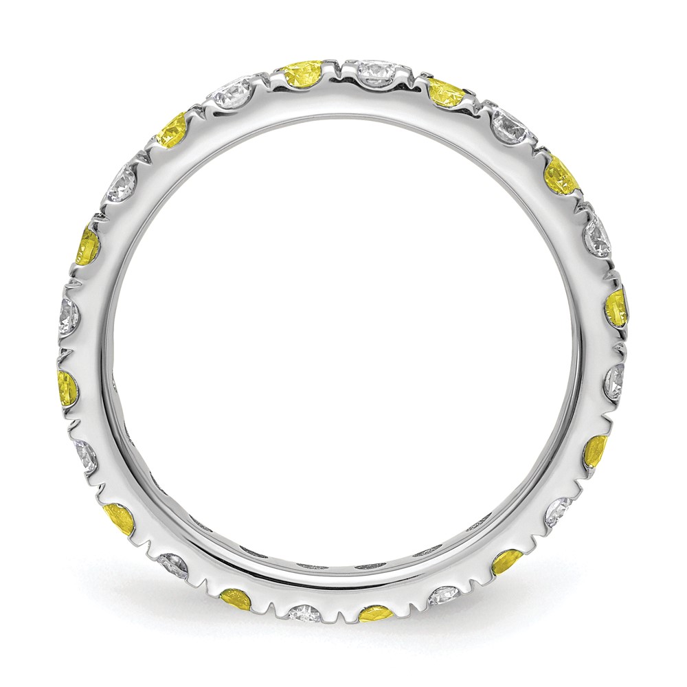 14k White Gold 3/4 carat Lab Grown Diamond VS/SI+ G+ and Lab Created Yellow Sapphire Size 7 Eternity Band