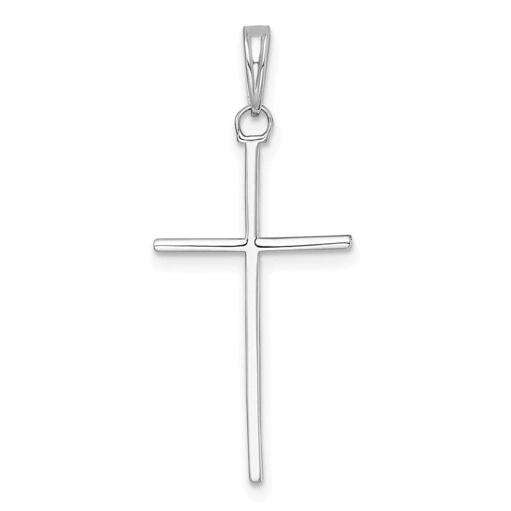 14K White Gold 3-D and Polished Stick Cross Pendant