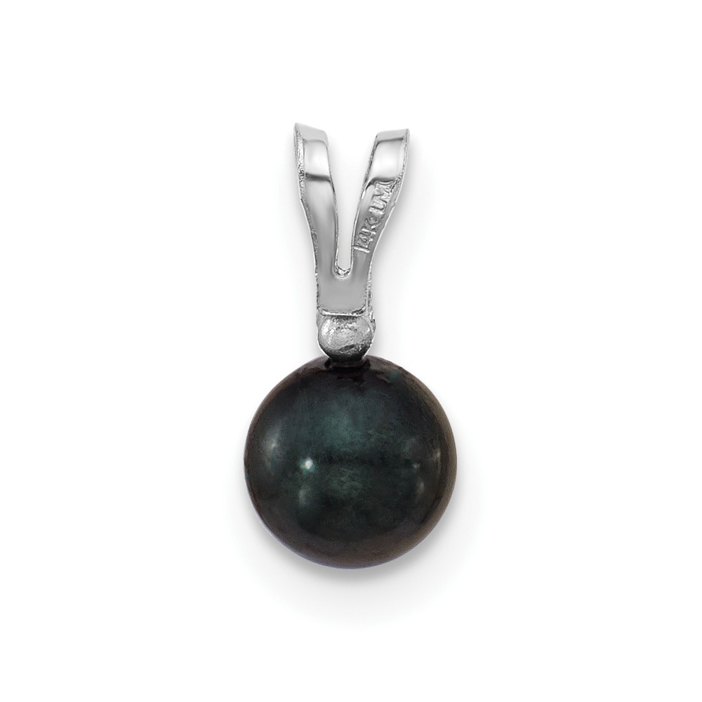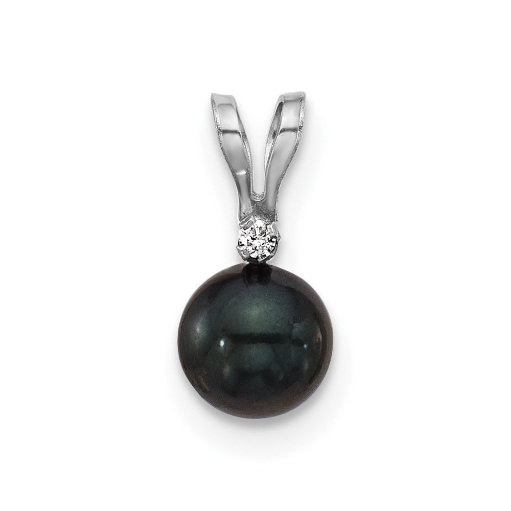 14k White Gold 5-6mm Black Round Akoya Saltwater Cultured Pearl and .01 Carat Diamond Pendant