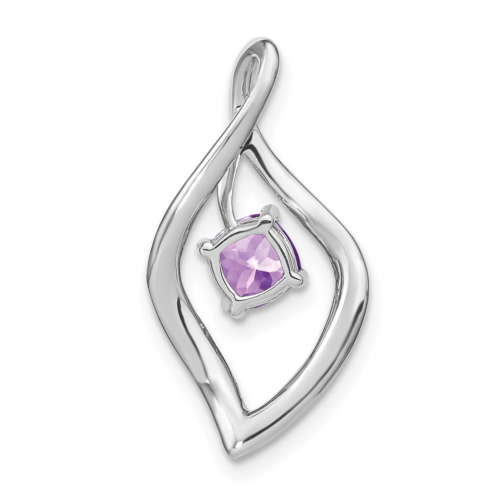 14k White Gold 5mm Cushion Amethyst and Diamond Leaf Chain Slide