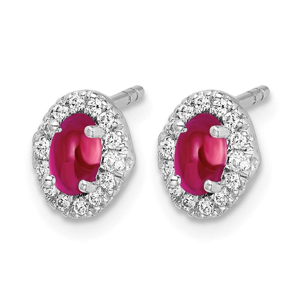 14k White Gold 5x3mm Oval Ruby Cabochon and Diamond Halo Post Earrings