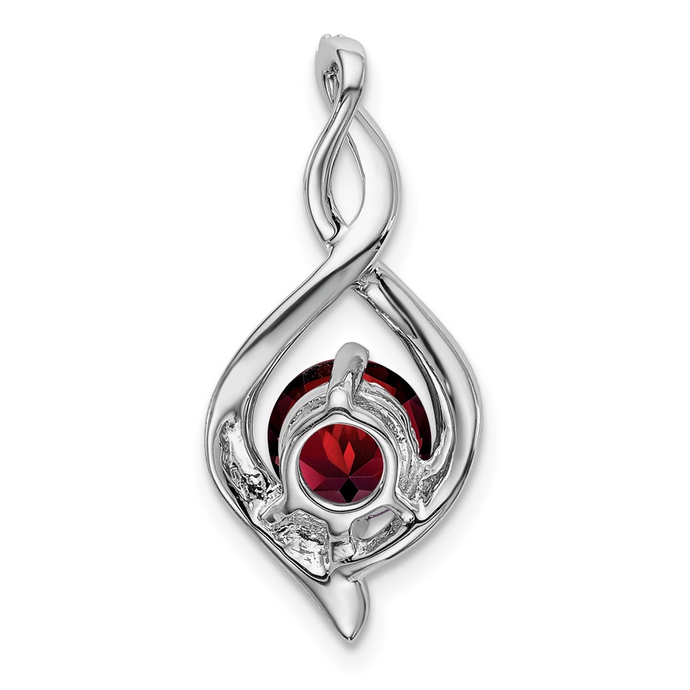 14k White Gold 6.5mm Round Garnet and Diamond Fancy Pendant