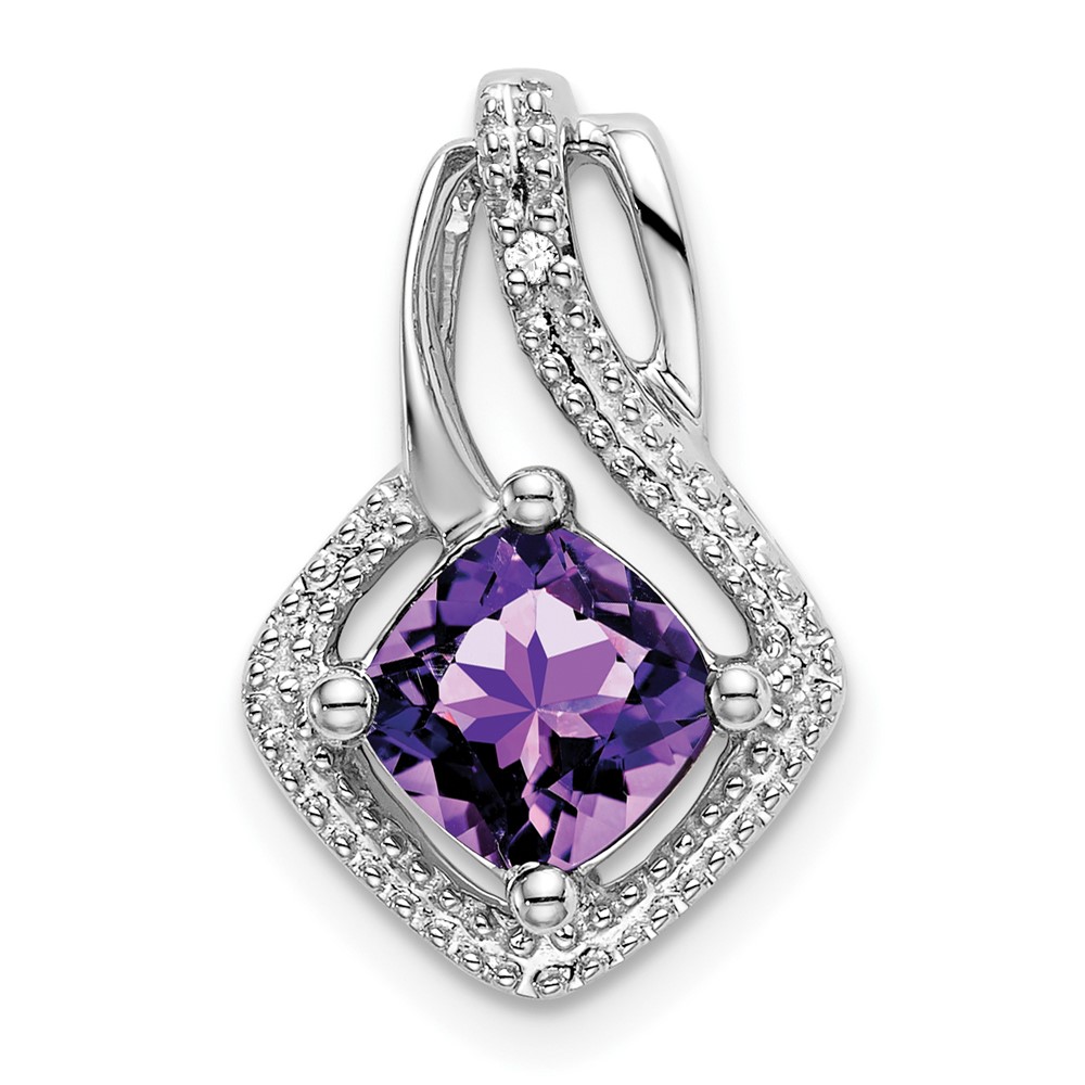 14k White Gold 6mm Cushion Amethyst and Diamond Chain Slide