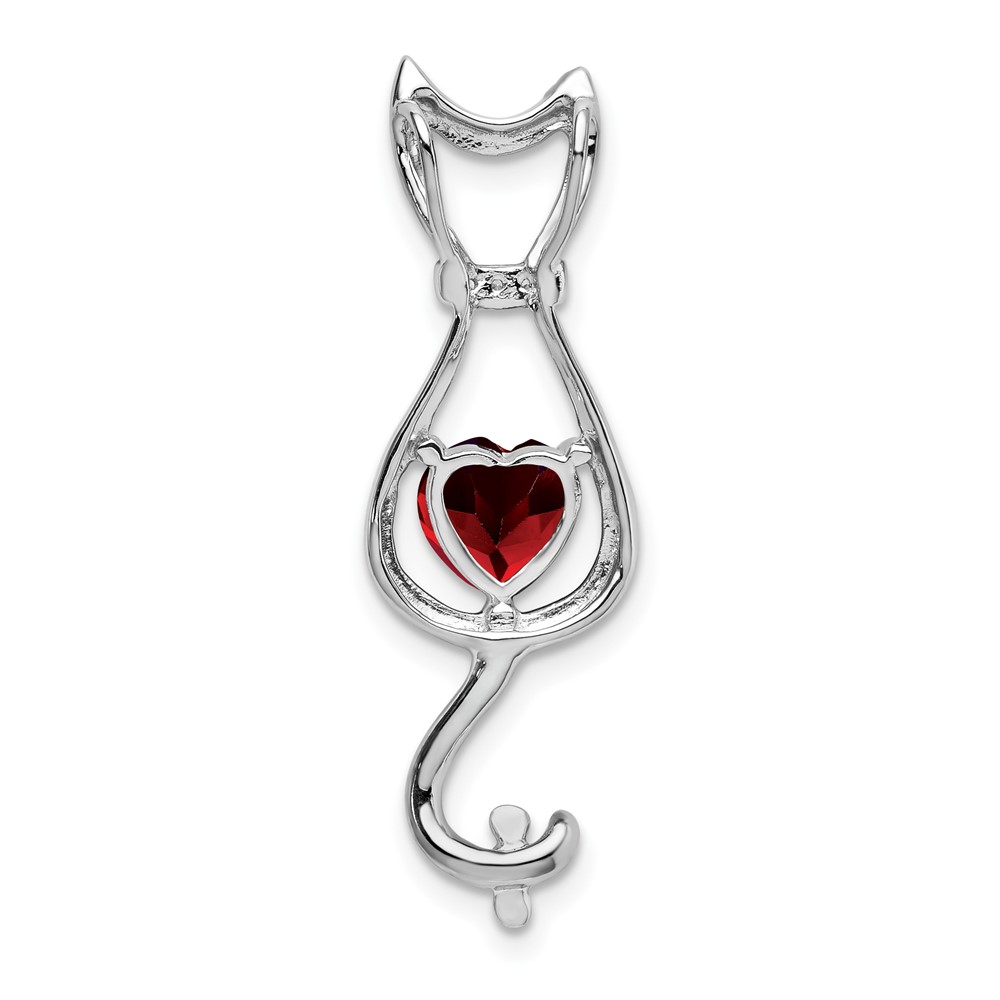 14k White Gold 6mm Heart Garnet and Diamond Cat Chain Slide