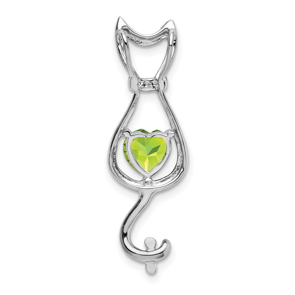 14k White Gold 6mm Heart Peridot and Diamond Cat Chain Slide