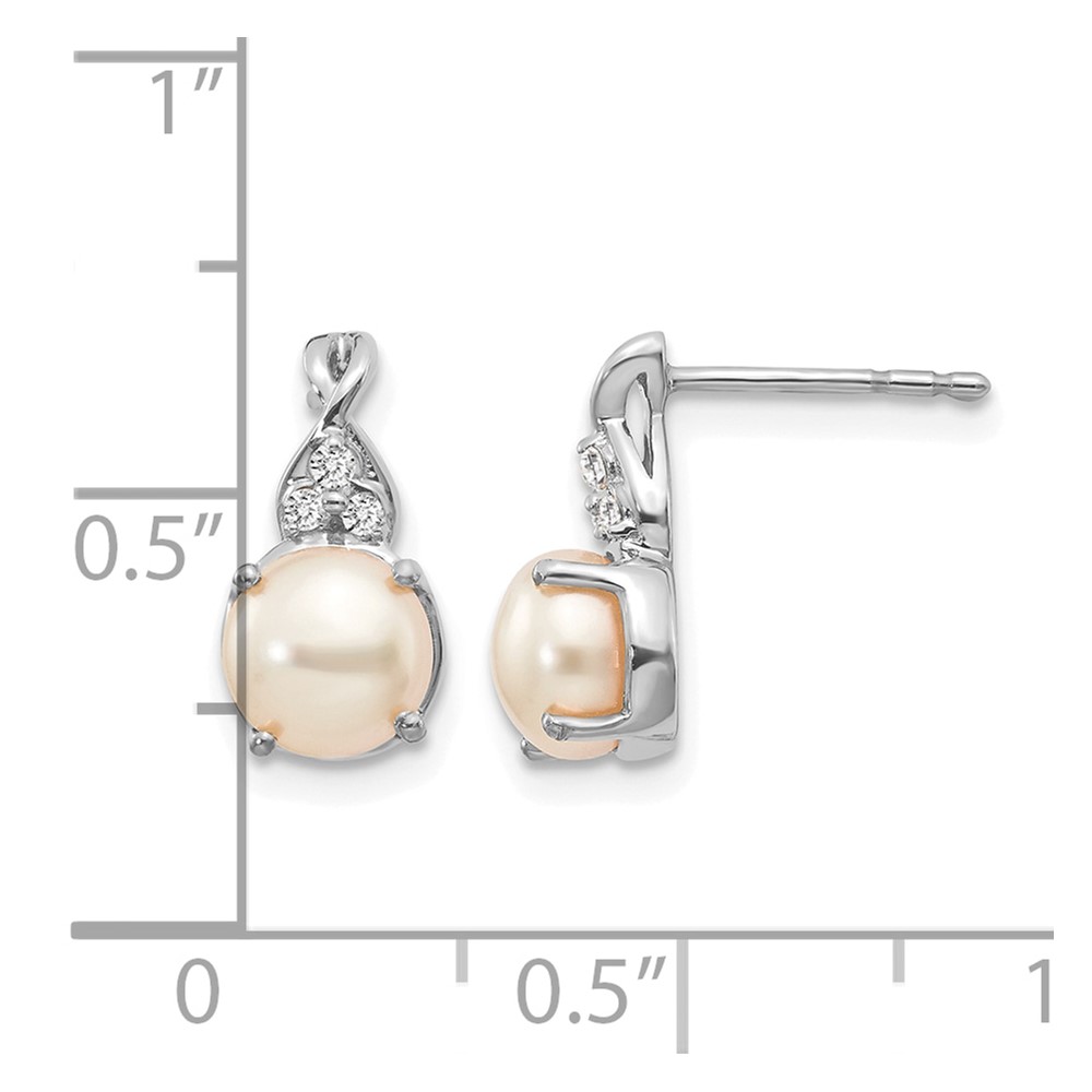 14k White Gold 6mm June/Freshwater Cultured Pearl and Diamond Post Earrings