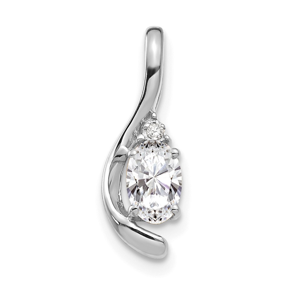 14k White Gold 6×4 Oval April/White Topaz and Diamond Pendant