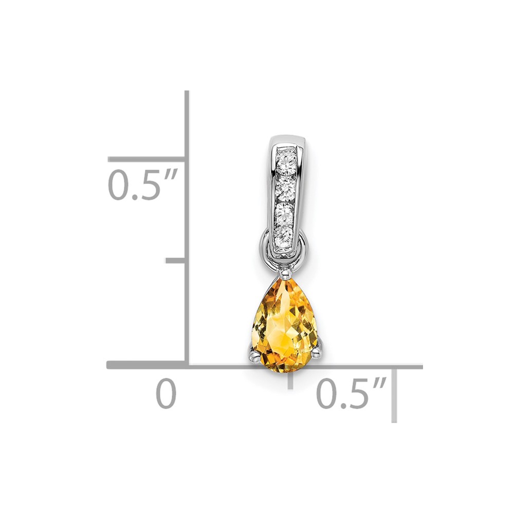 14k White Gold 6×4 Pear November/Citrine and Diamond Pendant