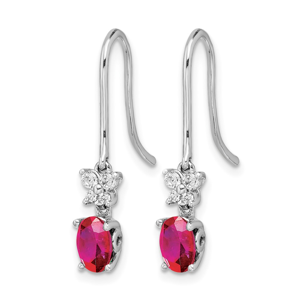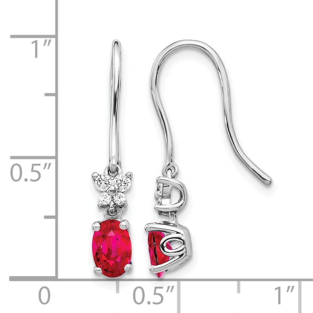 14k White Gold 6x4mm Oval Ruby and Diamond Shepherd Hook Earrings