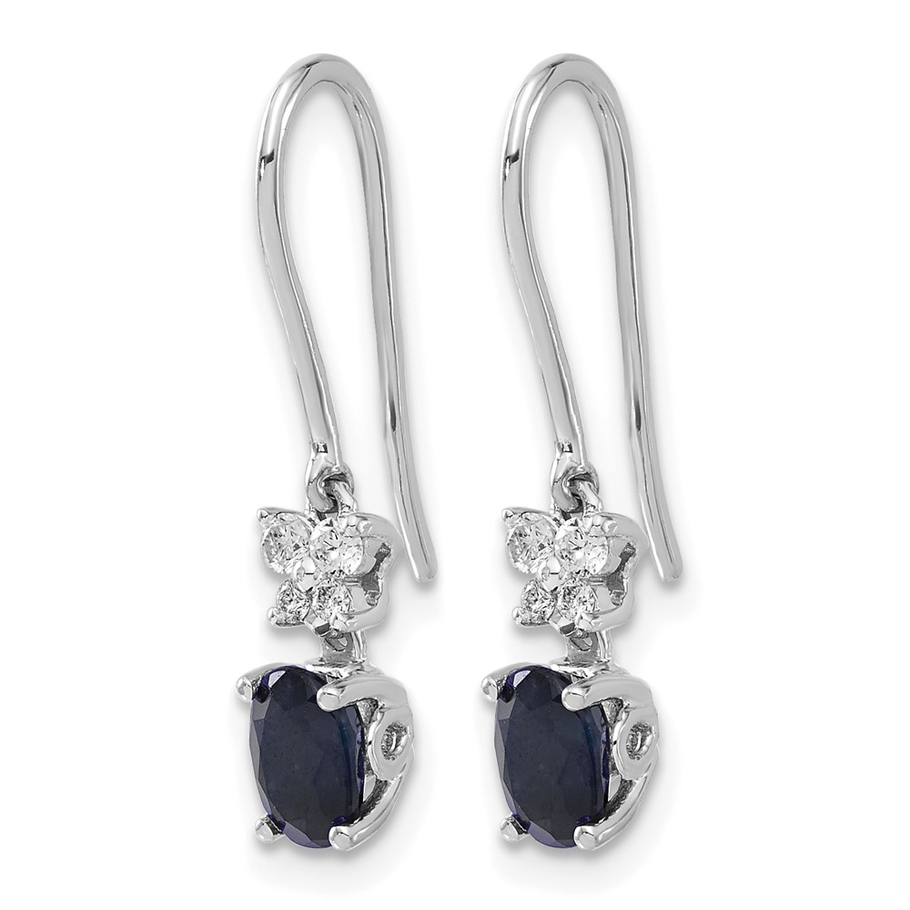 14k White Gold 6x4mm Oval Sapphire and Diamond Shepherd Hook Earrings
