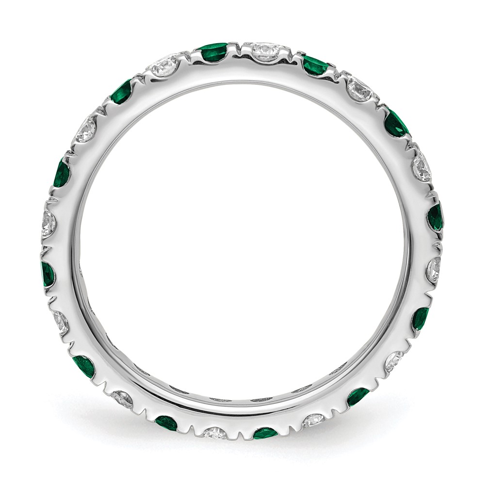 14k White Gold 7/8 carat Lab Grown Diamond VS/SI+ G+ and Lab Created Emerald Size 8 Eternity Band
