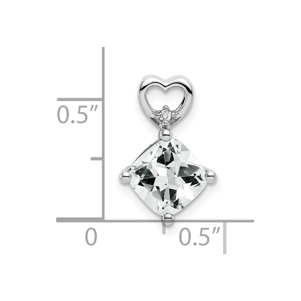 14k White Gold 7mm Cushion April/White Topaz and Diamond Heart Chain Slide