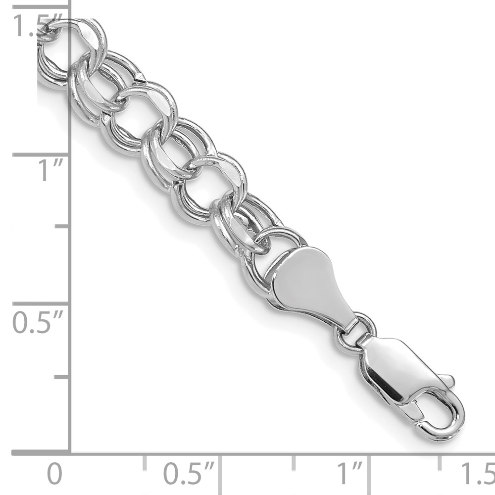 14k White Gold 6mm Hollow Double Link Charm Bracelet