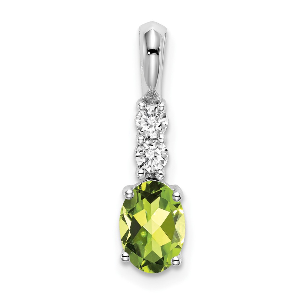 14k White Gold 7×5 Oval August/Peridot and Diamond Pendant