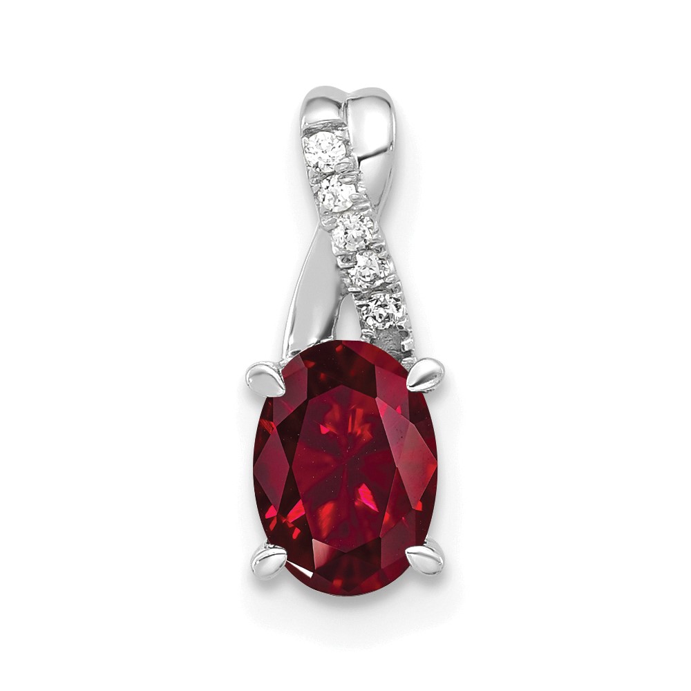 14K White Gold 7×5 Oval July/Lab Created Ruby and Diamond Pendant