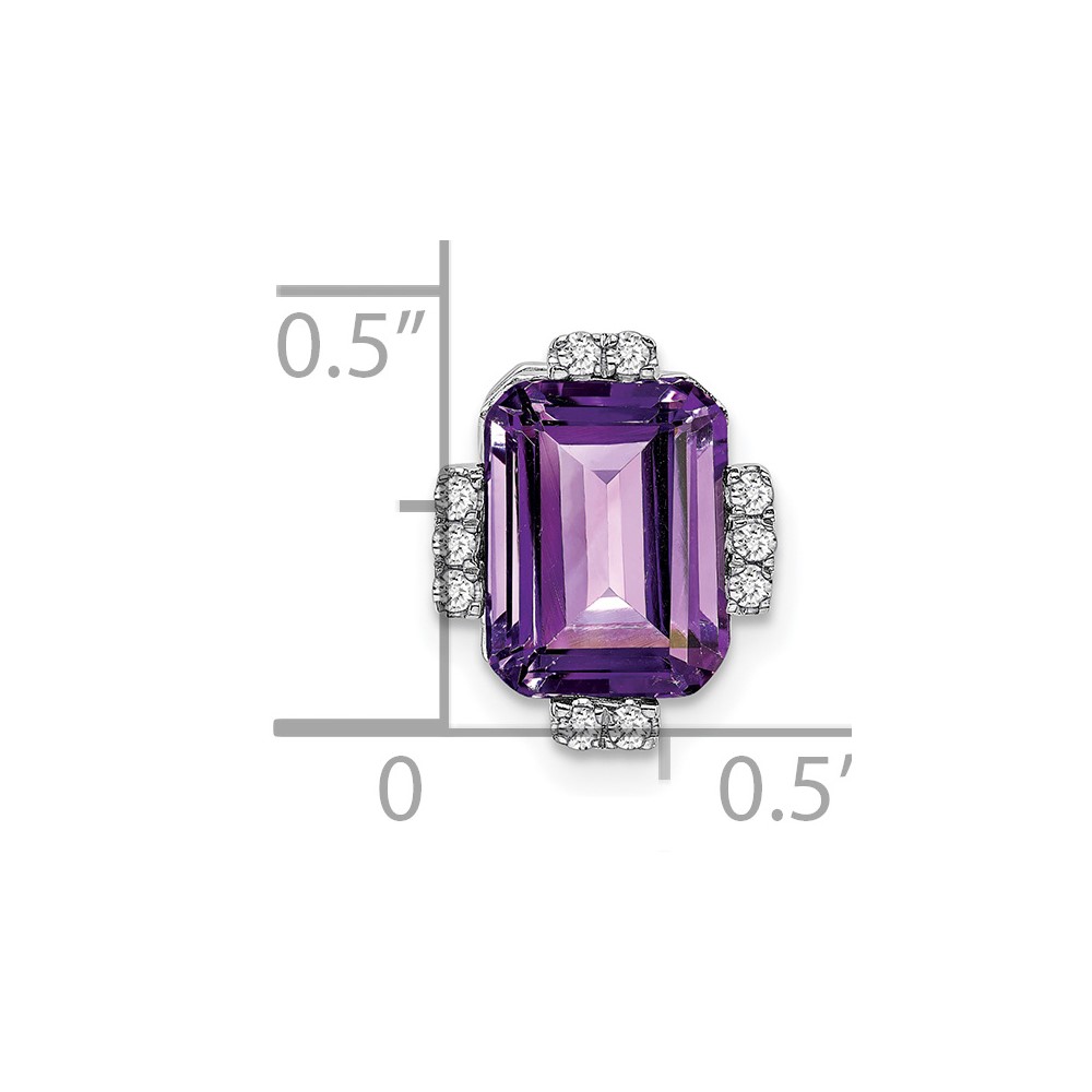 14k White Gold 9x7mm Octagon Amethyst and Diamond Vintage Chain Slide