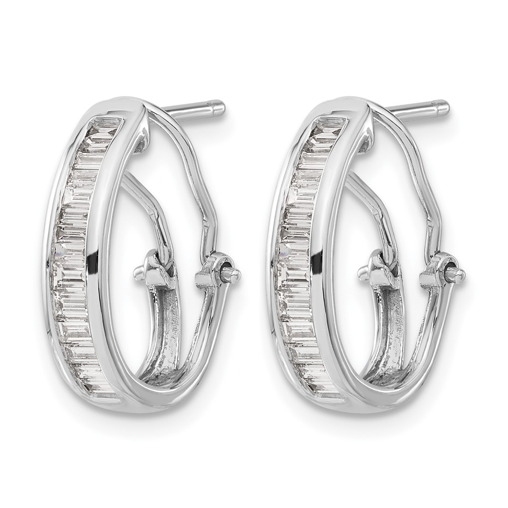 14k White Gold Baguette Diamond Omega Back Hoop Earrings