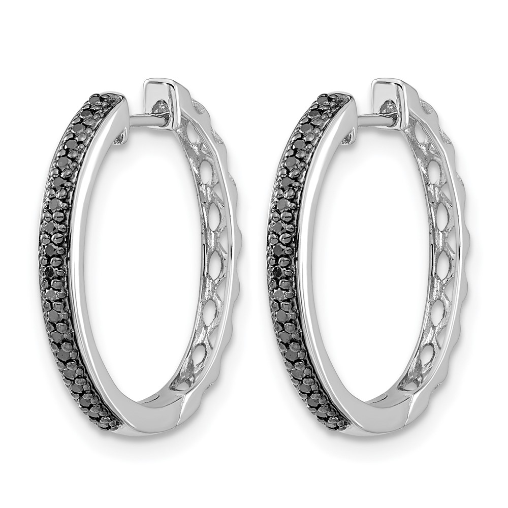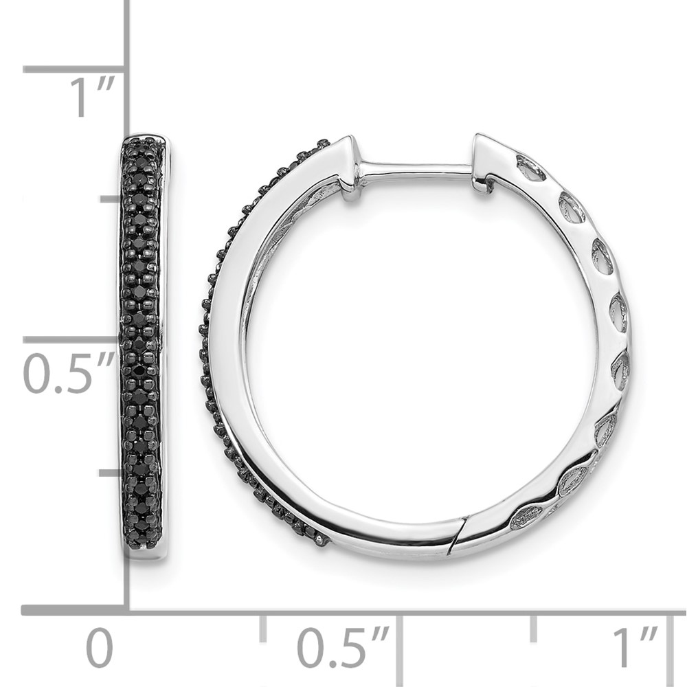 14k White Gold Black Diamond 2mm Hinged Hoop Earrings