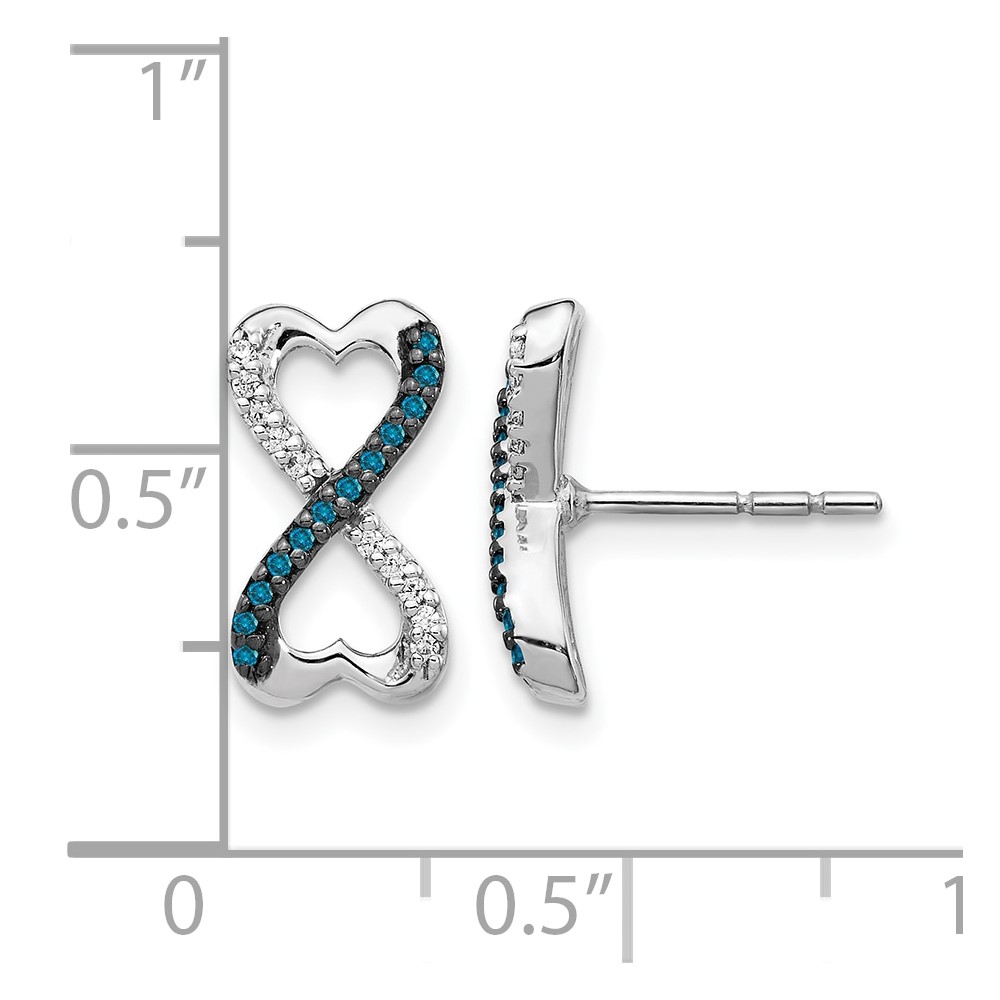 14k White Gold Blue and White Diamond Infinity Heart Post Earrings