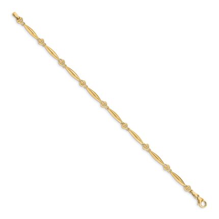 14k White Gold Complete 0.03 carat Diamond Heart and Oval Link 7.25 inch Bracelet