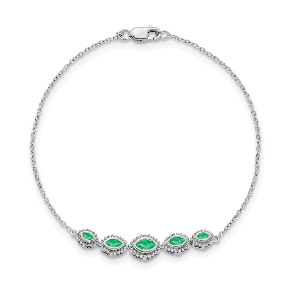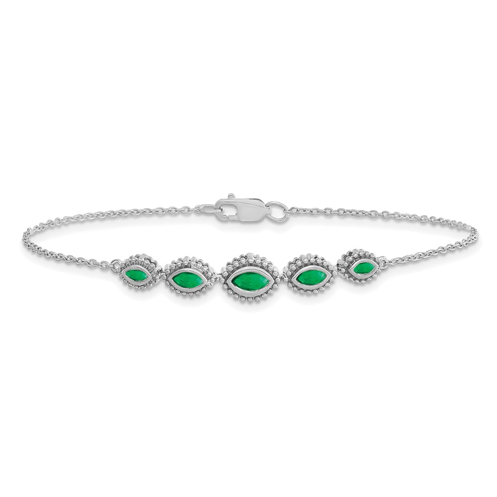 14k White Gold Complete 5-Stone Bezel-set Marquise Emerald and Chain 7 inch Bracelet