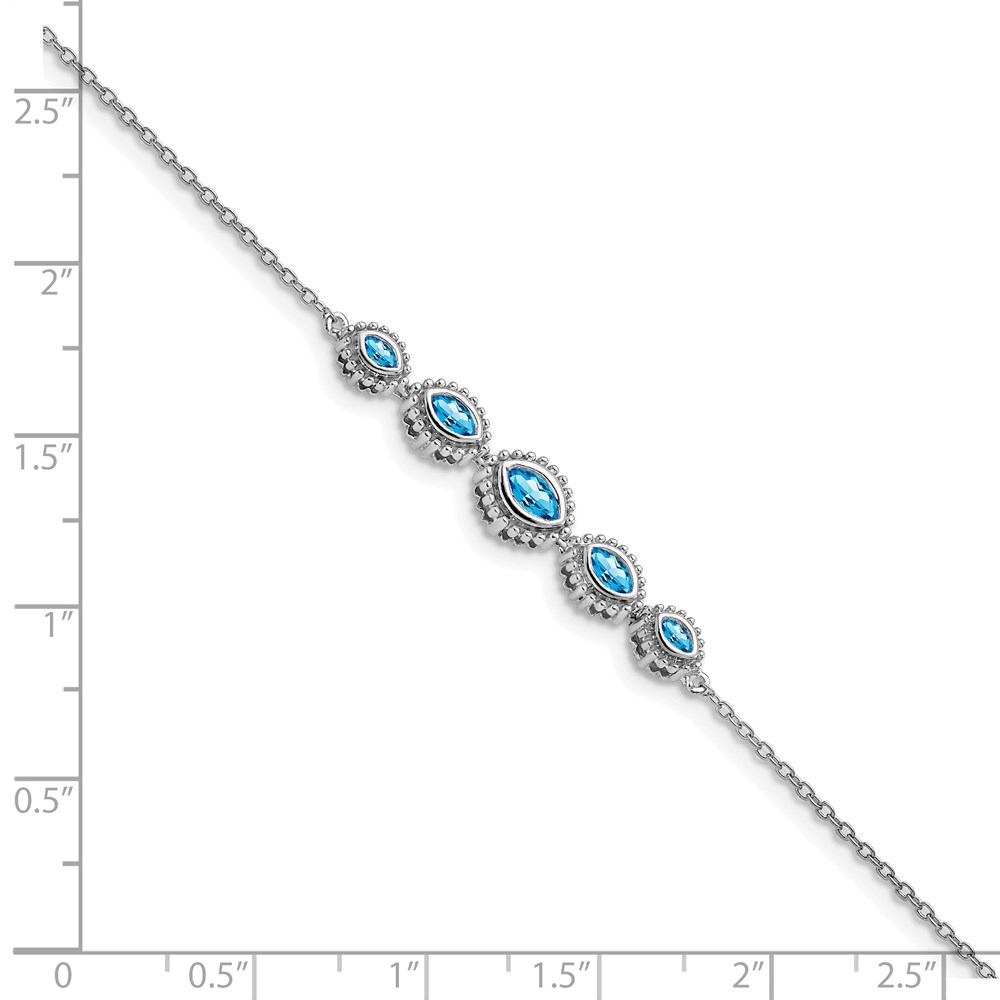 14k White Gold Complete 5-Stone Bezel-set Marquise Swiss Blue Topaz and Chain 7 inch Bracelet