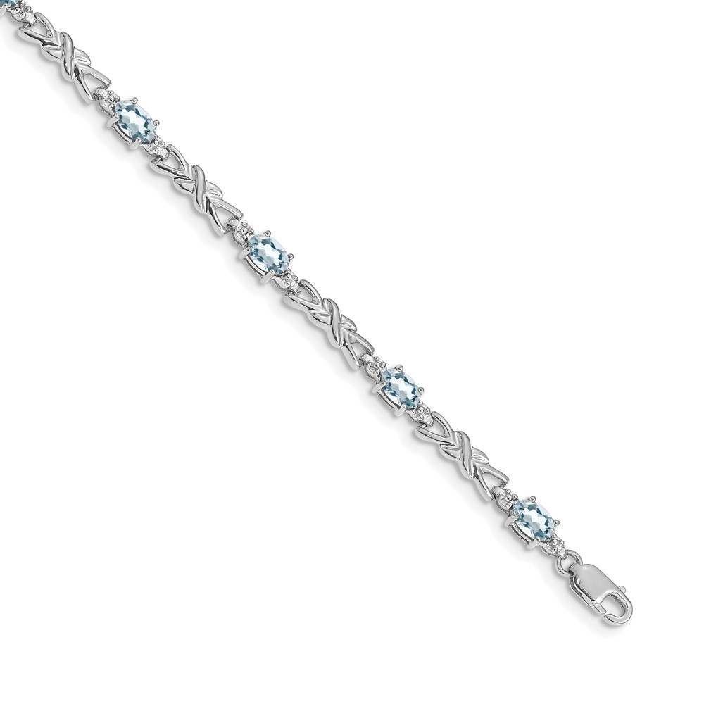 14k White Gold Complete Diamond and Oval Aquamarine X-design 7.25 inch Bracelet