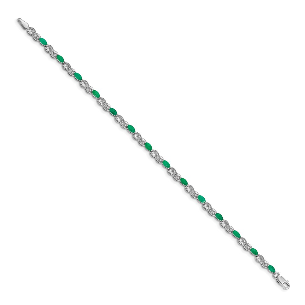 14k White Gold Complete Diamond and Oval Emerald Infinity 7.25 inch Bracelet