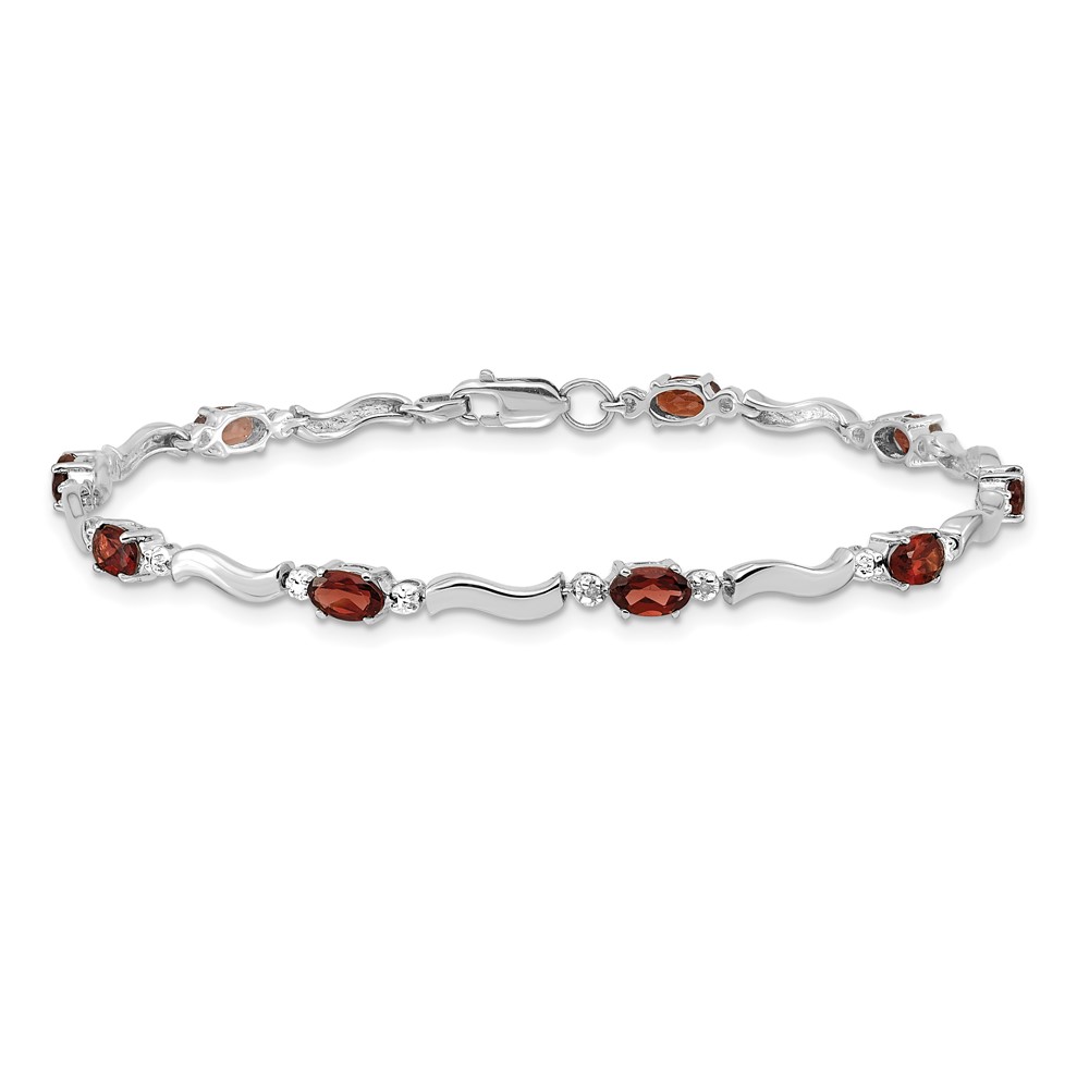 14k White Gold Complete Diamond and Oval Garnet Wavy Link 7 inch Bracelet